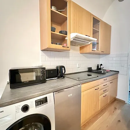 Ferielejlighed er udstyret med et køleskab og en brødrister i et køkken. Vaclav Havel lufthavn kan man nå på 25 minutter i bil.